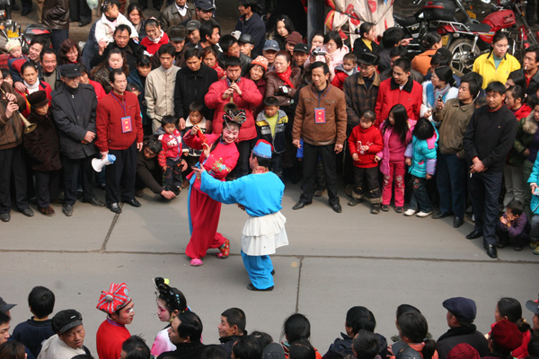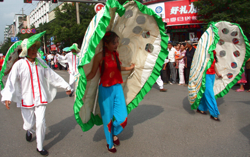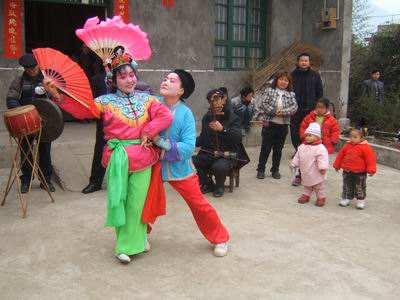 一旦一丑表演,用手巾和折扇作道具。旦的表演含蓄細(xì)膩,動作優(yōu)美輕俏,以眉目傳情(脧眉眼)為特點。丑的表演活潑聰明,俏皮逗樂,動作粗獷。流傳在境內(nèi)的地花鼓有“洗菜心”、“銅錢歌”、“望郎歌”等。