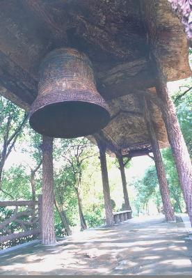 飛來鐘原為君山崇勝寺的古鐘,南宋淳佑五年(公元 1245 年),荊湖安撫制置使孟珙重修崇勝寺時(shí)復(fù)制一鐘,鐘高一丈多,大數(shù)圍,重4000余斤,上有“淳佑五年造”,鐘身上鑄有“皇帝萬歲,國(guó)泰民安,風(fēng)調(diào)雨順,五谷豐登”16 個(gè)大字,四方凸出的部分用青銅澆鑄的四條金龍,栩栩如生,形態(tài)逼真。原鐘在1966 年被砸毀,現(xiàn)在的飛來鐘是1979 年由市閥門廠復(fù)制而成,高約2 米,直徑1.2 米,重約 2 噸。鐘身上改鑄著鐘相、楊幺起義的戰(zhàn)斗口號(hào)“均貧富,等貴賤”六字,比前者更富有深刻的含義。這口古鐘有段優(yōu)美的傳說。相傳南宋初年,洞庭湖畔數(shù)以十萬計(jì)的農(nóng)民在楊幺率領(lǐng)下,掀起了轟轟烈烈的農(nóng)民起義。相傳一天夜晚,朝廷派兵前來偷襲駐扎在君山的楊幺寨,忽然從天上飛來一口巨鐘,鐘聲陣陣,催醒義軍,奮起抗敵,因此叫飛來鐘。這是人們深切懷念楊幺起義軍,用各種方式來表達(dá)贊美之情。古鐘的傳說便寄托了人們的這種心情。有人據(jù)此認(rèn)為,原來的飛來鐘系楊幺起義軍所鑄的報(bào)警器。