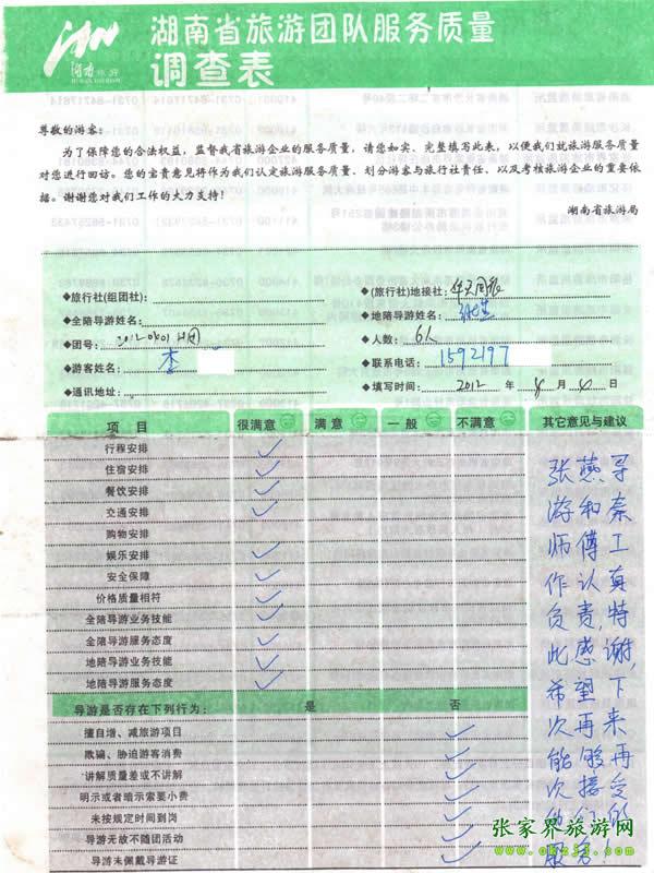 - 6月25日福建邵先生一行12人質(zhì)量反饋單