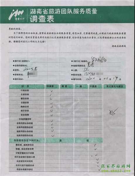 2011年6月17日牛先生一行5人旅游質量反饋