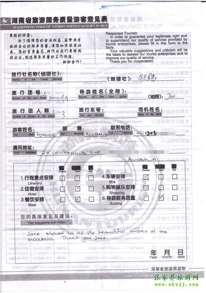 - 游客夏先生為表揚(yáng)導(dǎo)游李姣姣寫來表揚(yáng)信致我張家界... [14811]
