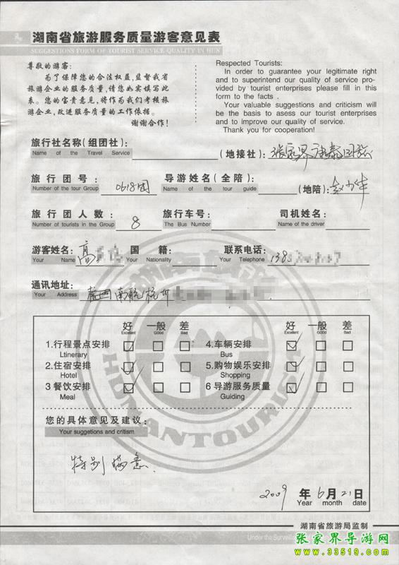 - 游客夏先生為表揚導游李姣姣寫來表揚信致我張家界... [14811]