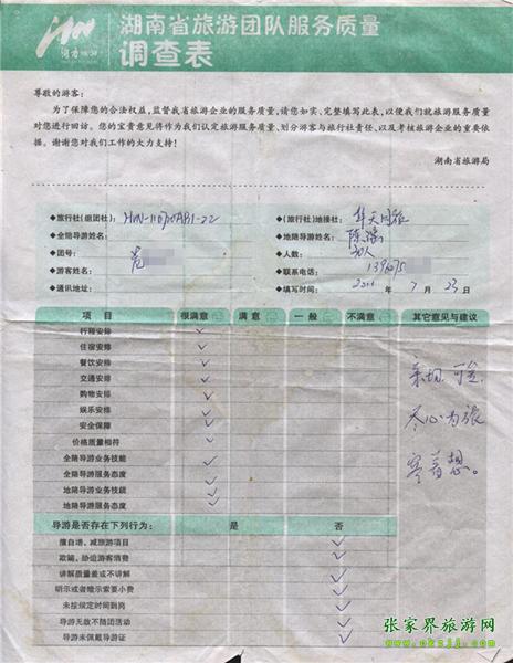 - 6月25日福建邵先生一行12人質(zhì)量反饋單