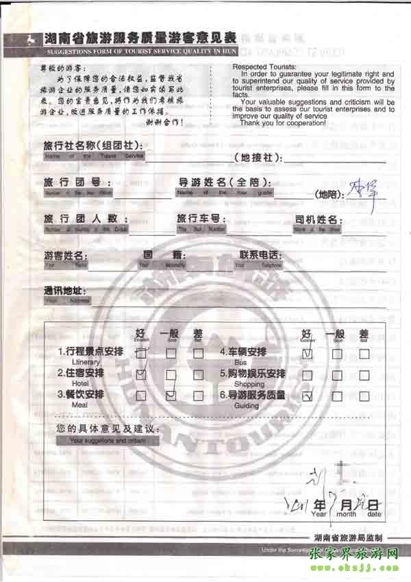 - 游客夏先生為表?yè)P(yáng)導(dǎo)游李姣姣寫來表?yè)P(yáng)信致我張家界... [14811]