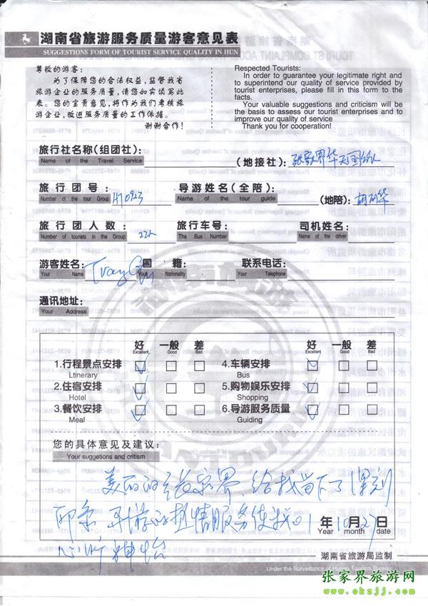 - 6月25日福建邵先生一行12人質(zhì)量反饋單