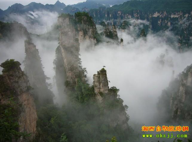 一.推薦理由:此線路集山、水、田園、洞窟、民俗等為一體的自然景觀和人文景觀,可較全面的了解張家界或湘西。當(dāng)我們?cè)诔缟骄X中穿越,在驚嘆奇峰氣象萬千、云海蒸騰的景象,在體驗(yàn)原始森林的幽靜,在舒展回歸自然的情懷的同時(shí),又可享受清新的空氣,欣賞湘西小鎮(zhèn)的古樸以及雞鳴狗吠、小橋流水的田園風(fēng)光。一吐久居都市塵世之氣,洗凈喧囂郁悶的氣息。