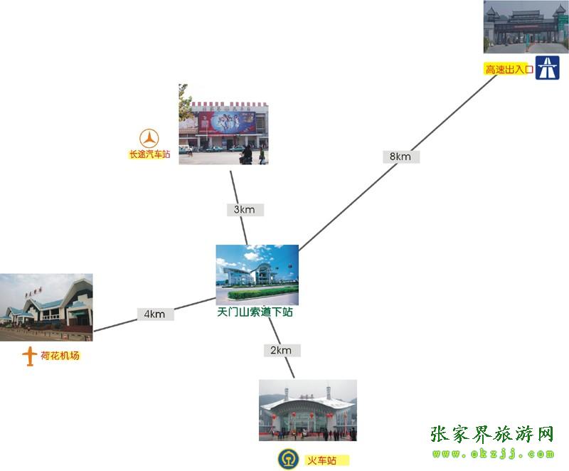![]() 天門山索道下站距荷花機(jī)場(chǎng)3公里,距火車站0.5公里,距長張高速公路出口也僅8公里之遙。景區(qū)周圍另有張羅、張清、張桑等公路通往省內(nèi)各個(gè)方向。進(jìn)城公路和市內(nèi)主要道路均安裝了交通指引標(biāo)示,寬暢的道路和清晰的指引路牌使得游客抵達(dá)天門山特別方便順暢。